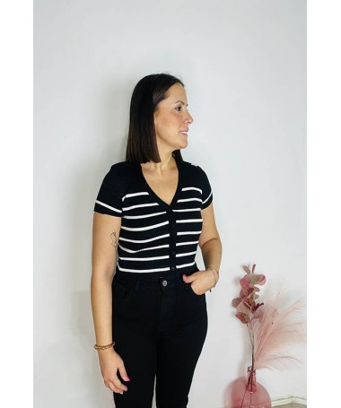 Cárdigan en tejido de punto y con estampado de rayas en tono oro.