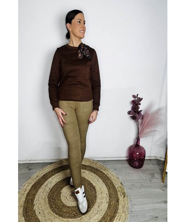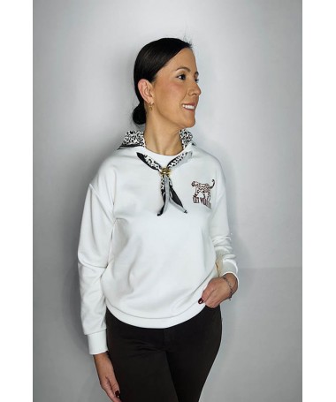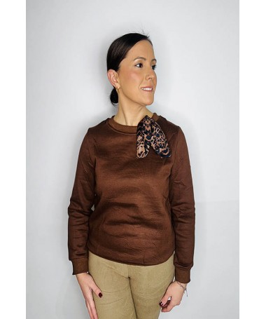 Sudadera de pelo por dentro. Detalle de lazo de leopardo en el cuello.