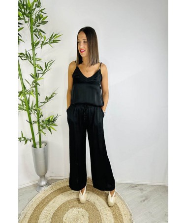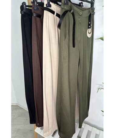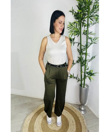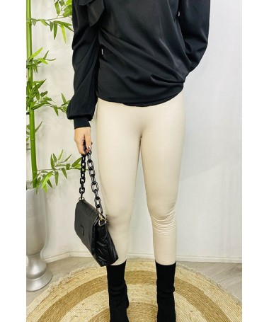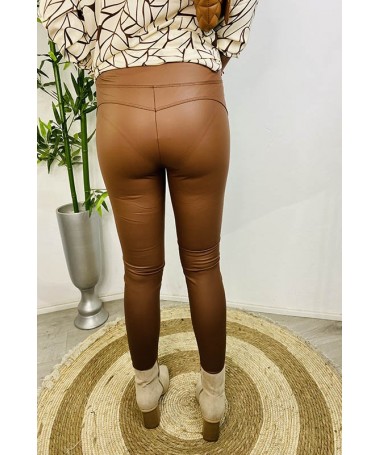 Pantalón en tejido de poli piel. Cintura alta y con forma de push up.