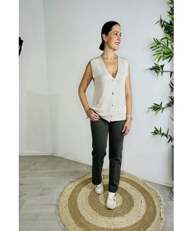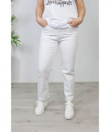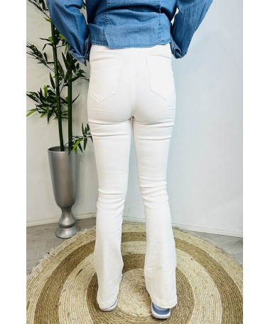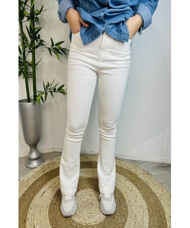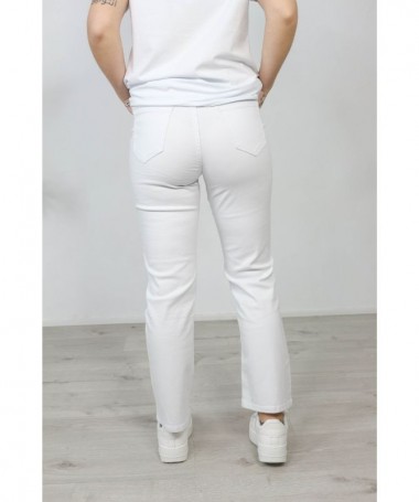 Pantalón de mujer con corte recto. Su tejido es tipo vaquero con licra. Color blanco.