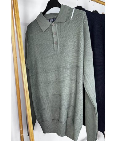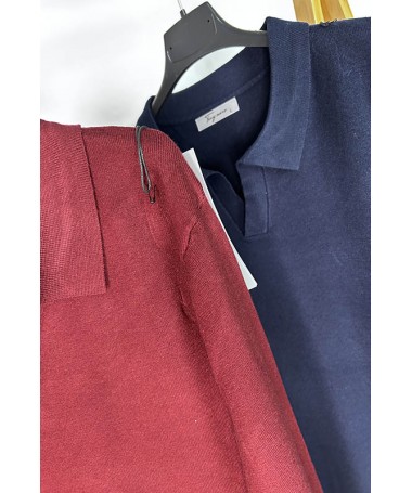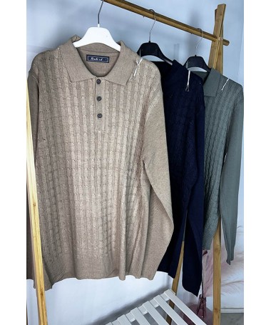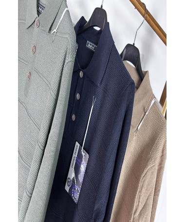 Jersey de cuello de polo. Tejido con formas en la parte delantera.