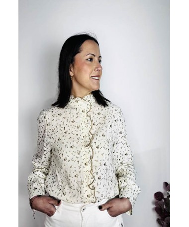 Camiseta en tejido de algodón con licra. Detalle de cuellos de baberola en estampado de cuadro Vichy.