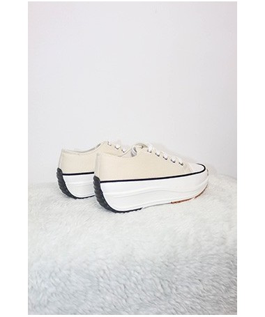 Zapatilla de tela con puntera de goma, suela ancha. Disponible en dos colores (negro , beig).