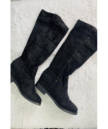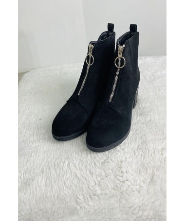Bota en tejido de antelina con bordado en el empeine. Lleva una forma como arrugada.