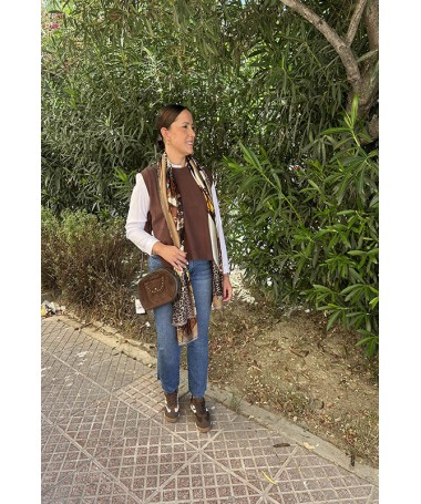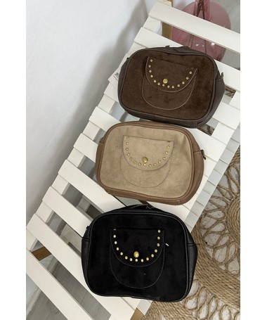Bolso de bandolera pequeño en terciopelo. Bolsillo pequeño de tachuelas.