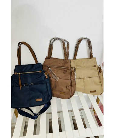 Mochila de nylon con cremallera y dos bolsillos delanteros.