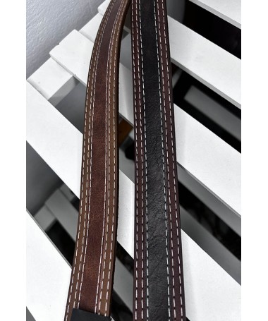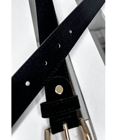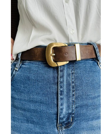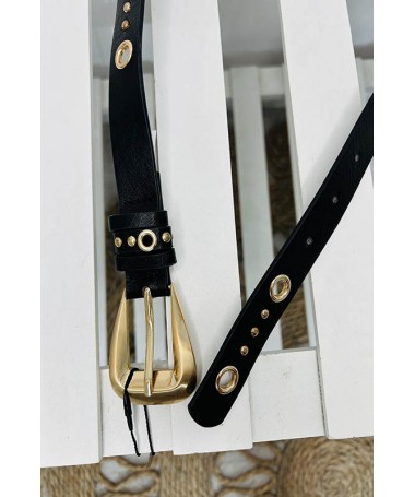 Cinturón de hebilla dorado. Material de tachuelas con perforado.