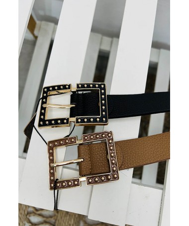 Cinturón de forma rectangular. Detalle de tachuelas.