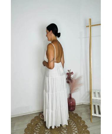 Vestido con detalle de estrella en el cuello. Espalda baja.