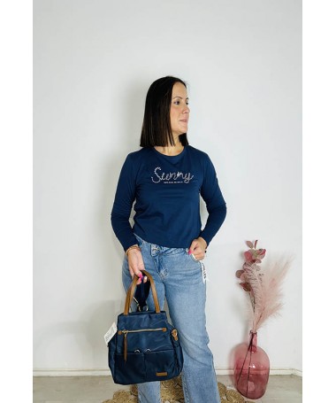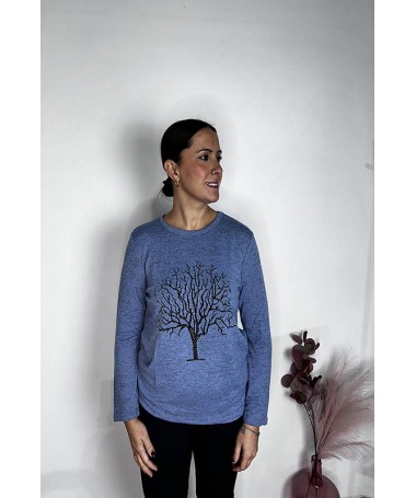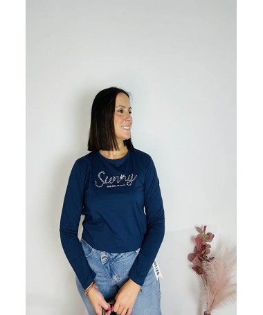 Camiseta en tejido elastico de piqué. Detalle en las mangas con forma de relieve.