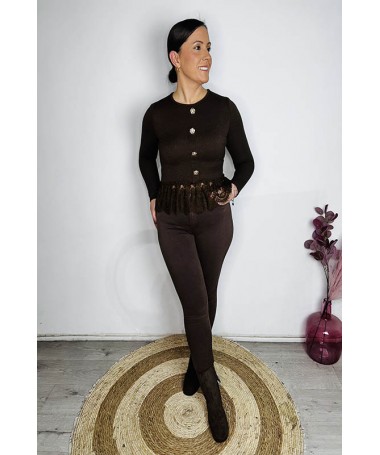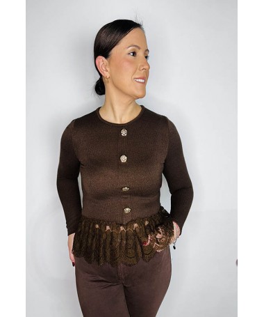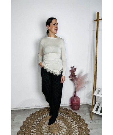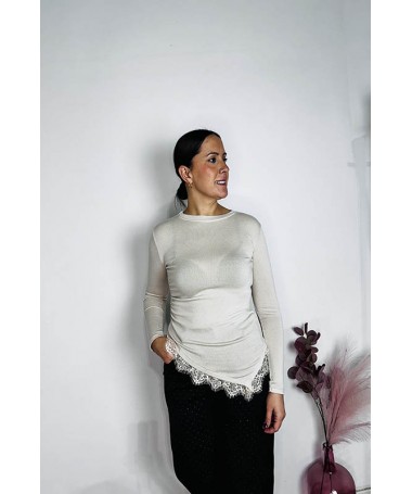 Jersey de punto fino tipo lencera. Encaje en el bajo.
