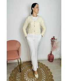 Rebeca en tejido de encaje. Abotonada y con bolsillos fingidos.