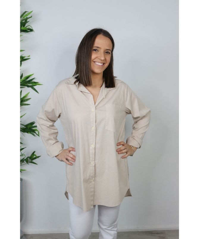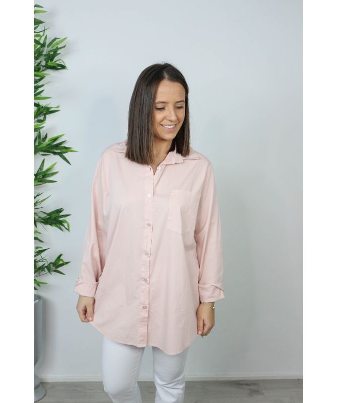 Camisa de mujer básica, abotonada y lleva bolsillo delantero. Disponible en cuatro colores. Talla única (36 a 42).