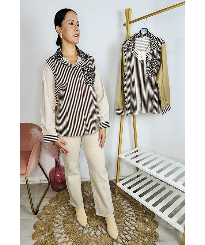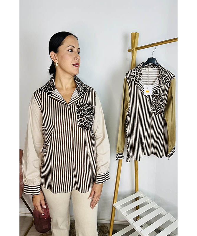 Camisa con estampado animal combinado con rayas. Talla única (36 a 40).