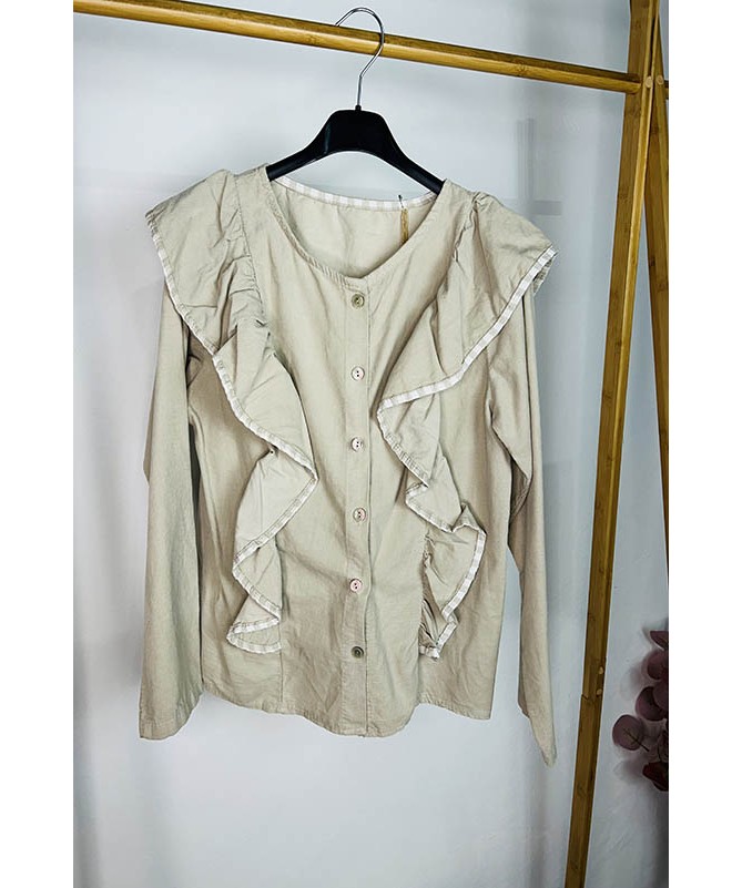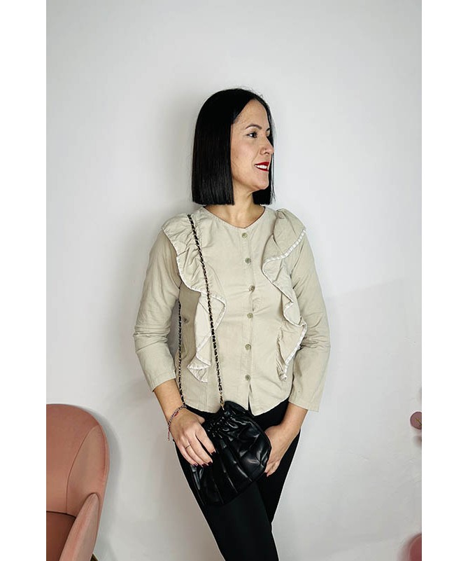 Blusa en tejido de micropana con volantes en el pecho acabado en cuadro vichy. Talla única(36 a 40).