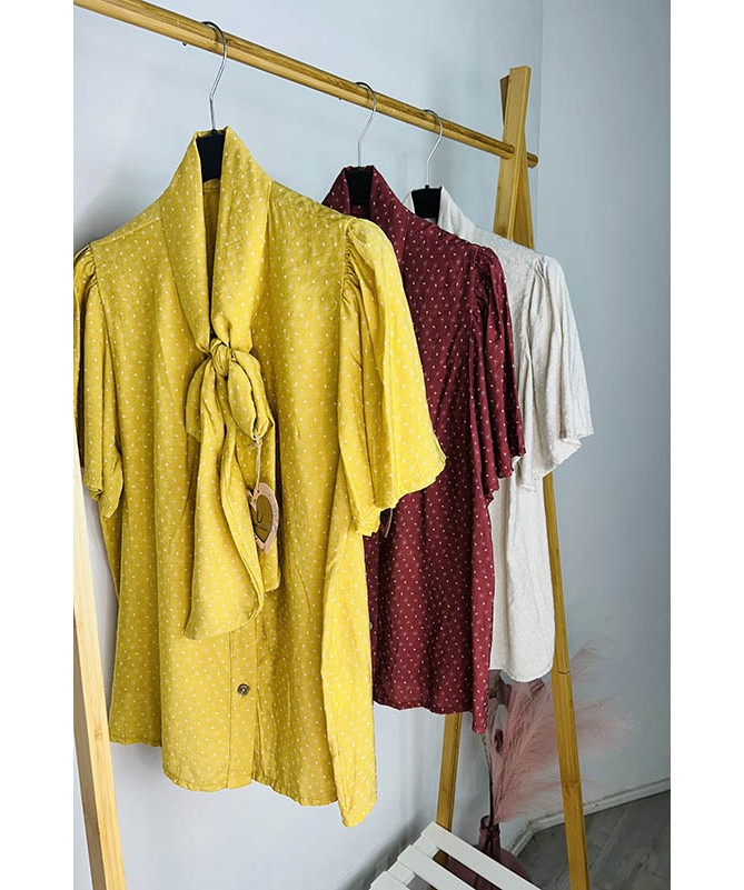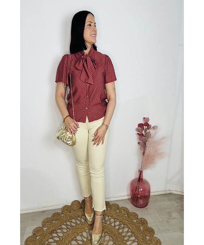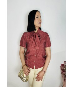 Blusa de lazo al cuello. Tejido estampado. Talla única (36/40).