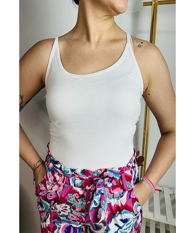 Camiseta tipo top, en tejido de canalé con tirante fino.