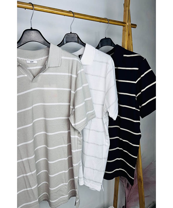 Camiseta con cuello de polo en tejido de pique estampado de rayas.