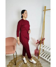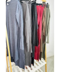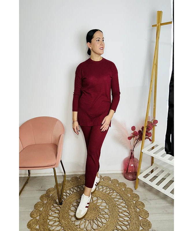 Conjunto de punto en canalé. Camiseta con rajas laterales. Pantalón tipo culotte.