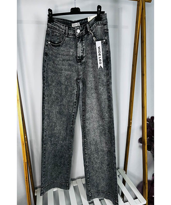 Pantalón vaquero en tipo de wide leg. Tono Gris.