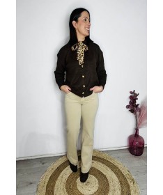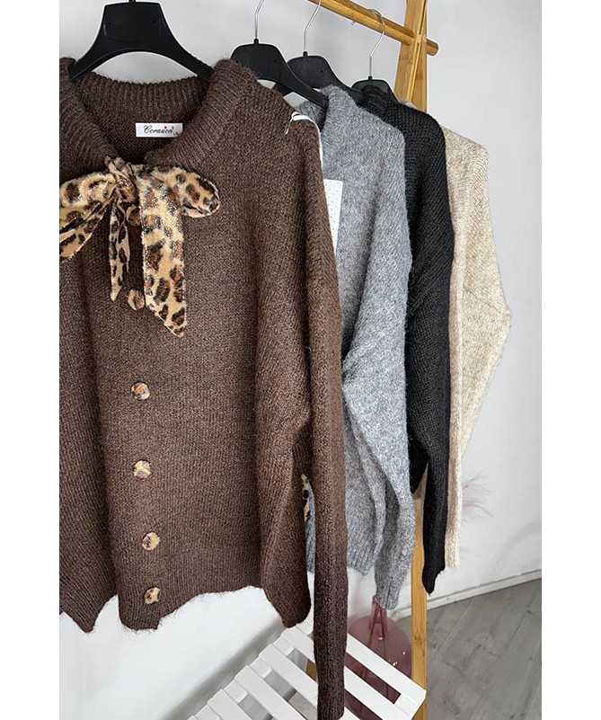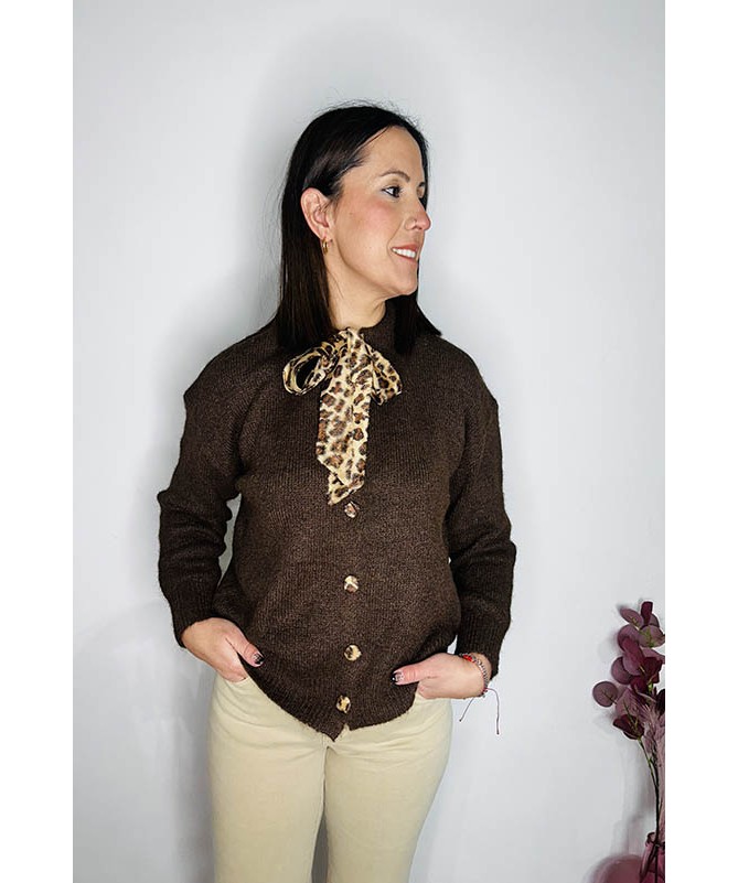 Chaqueta de punto gordito con detalle de lazada al cuello en estampado animal.