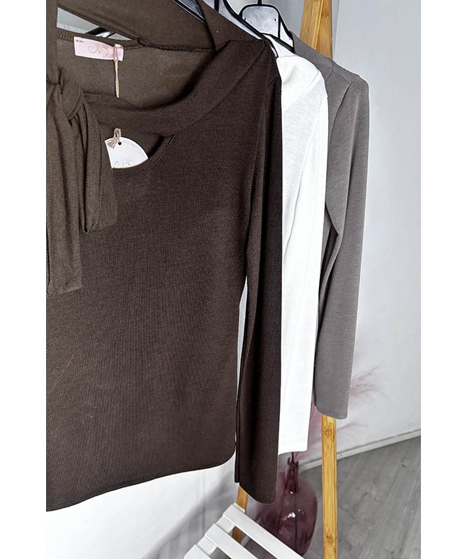 Jersey de punto con detalle de lazada al cuello.