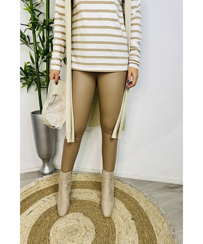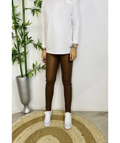 Leguin de tipo cuero con vello en el interior. Talle alto y cintura ancha.