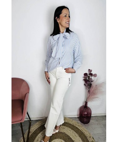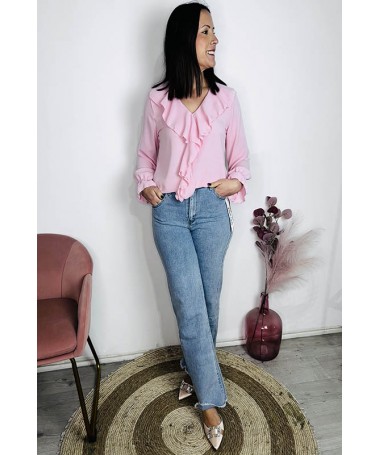 Blusa con volantes delanteros. Cuello de pico. Talla única (38/42).