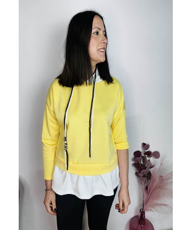 Sudadera con gorro con bajo combinado.