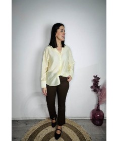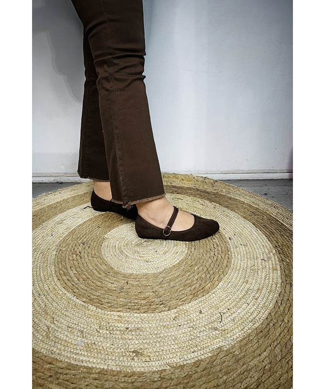 Pantalón en tejido vaquero de tono chocolate.