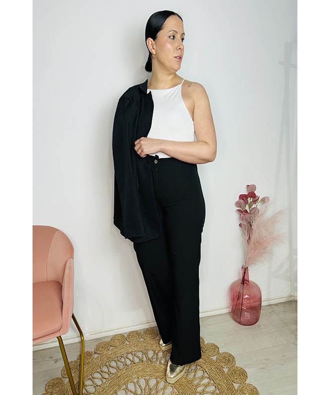 Pantalón de vestir de estilo palazzo. Bolsillos fingidos traseros.