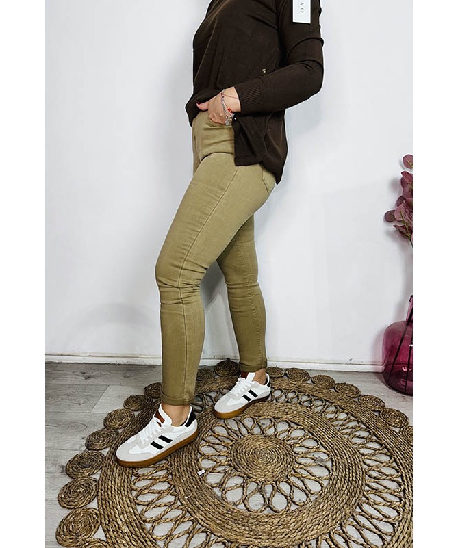 Pantalón de pitillo en tono beig. Tallaje grandes.