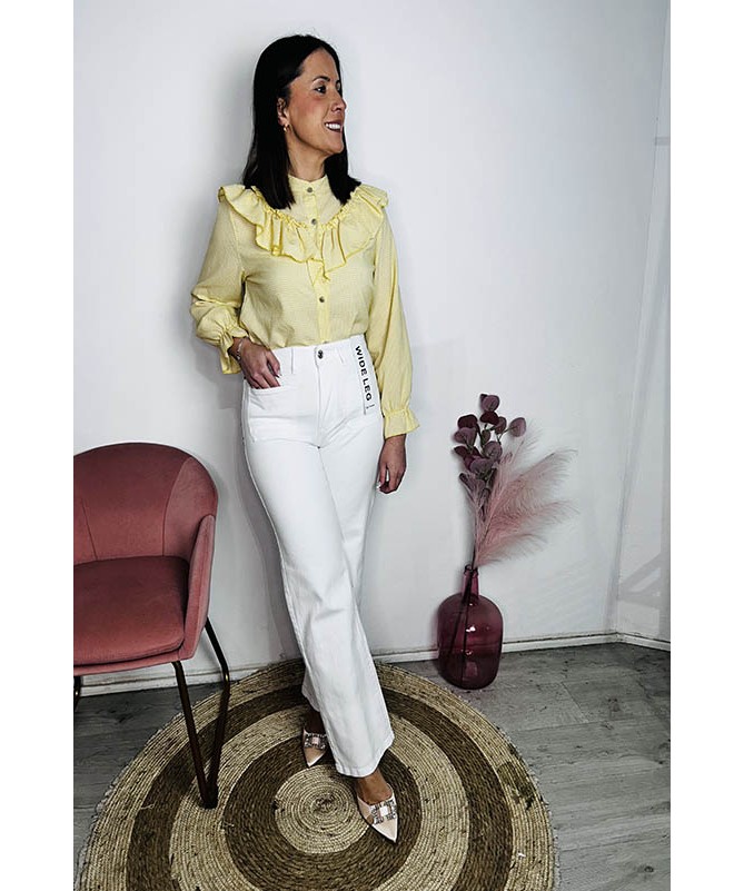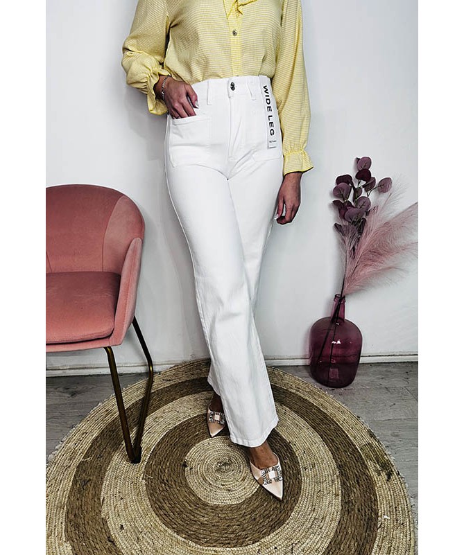 Pantalón de tipo wide leg con bolsillos delanteros.