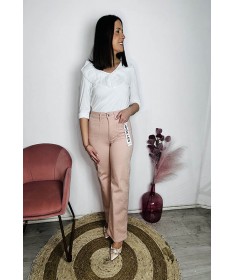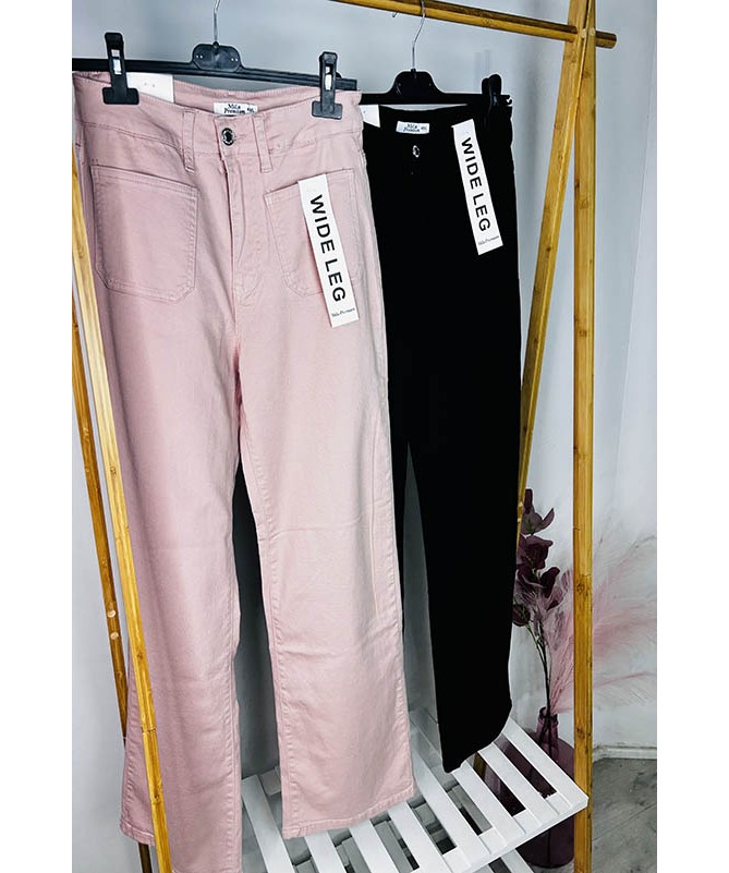 Jeans de colores con bolsillos delanteros. Estilo wide leg.