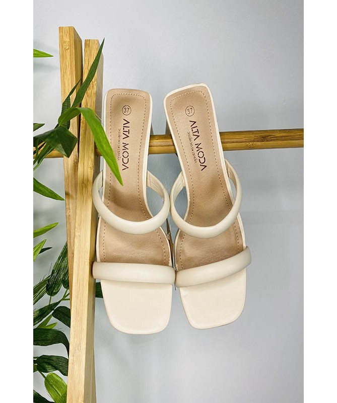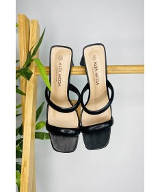 Sandalia de tacón bajo con forma cuadrada.