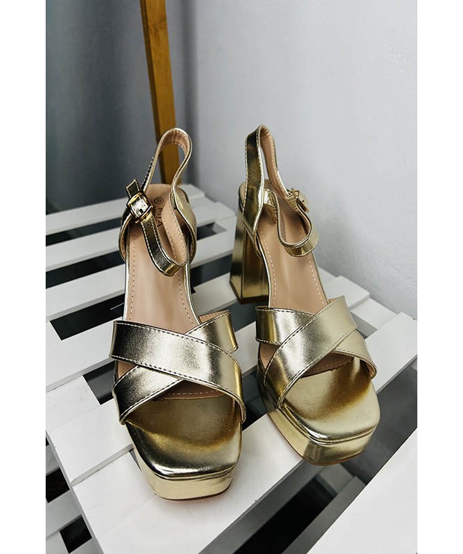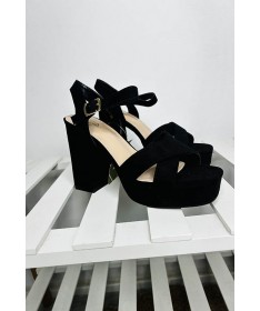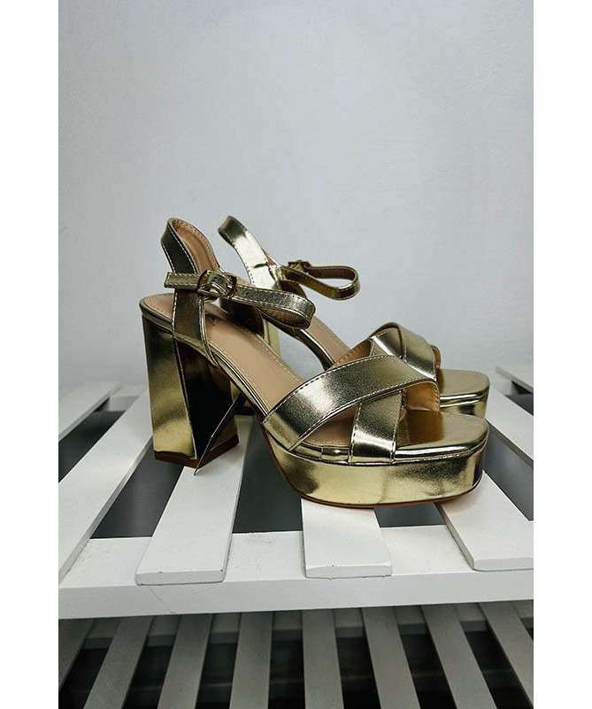 Sandalia de plataforma con parte delantera cruzada. Tacón alto gordito.