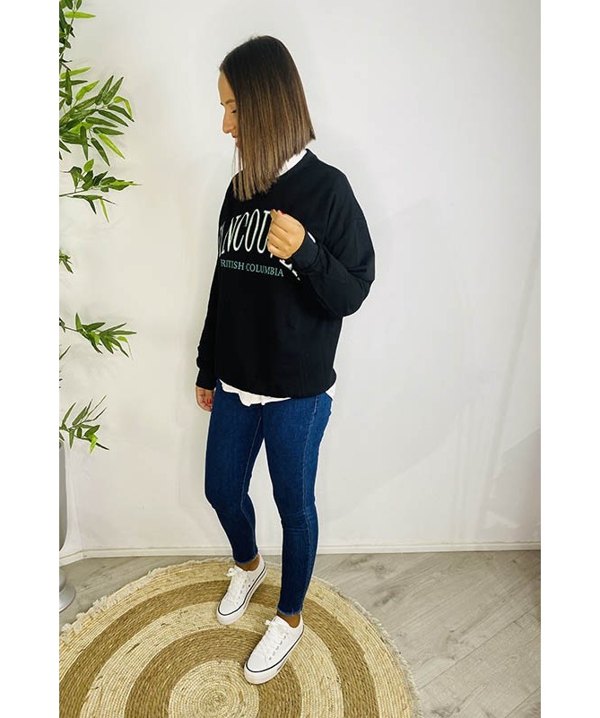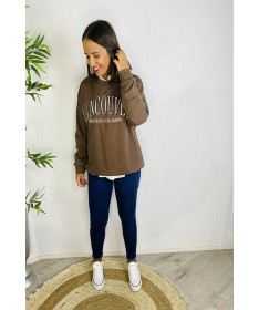 Sudadera de mujer con bajo doble volante en tejido de camisa. Lleva estampado de vespa en flores.
