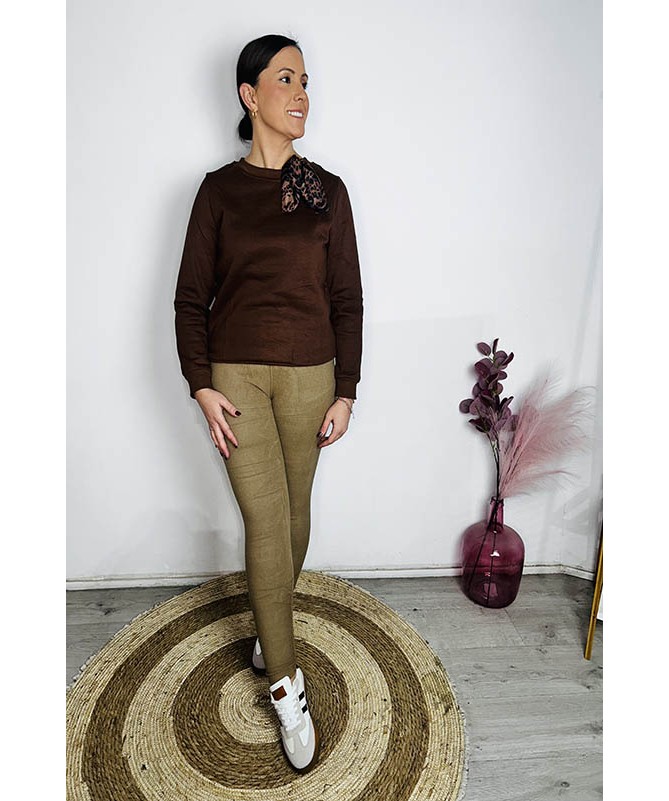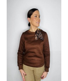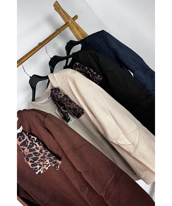 Sudadera de pelo por dentro. Detalle de lazo de leopardo en el cuello.