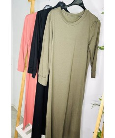 Vestido de corte midi con media manga. Cuello redondo y en tejido de algodón. Talla única (36 a 42).
