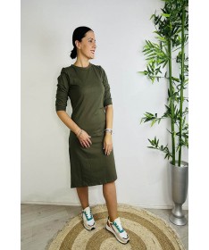 Vestido de corte midi con media manga. Cuello redondo y en tejido de algodón.