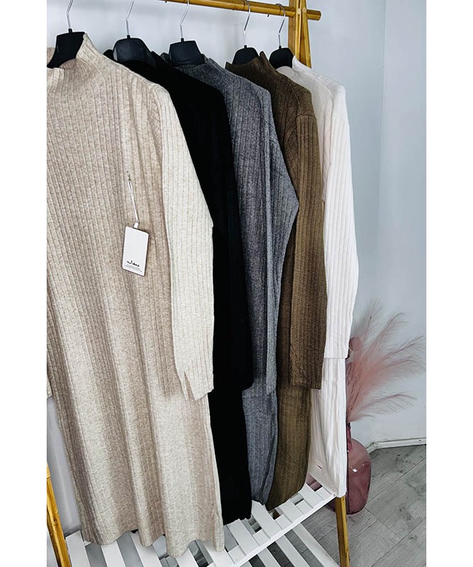 Vestido de canalé con cuello de perkin.