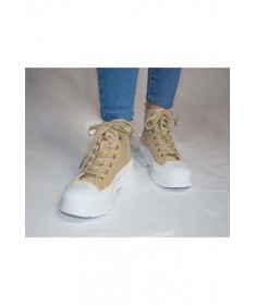 Zapatilla de tela con puntera de goma, suela ancha. Disponible en dos colores (negro , beig).